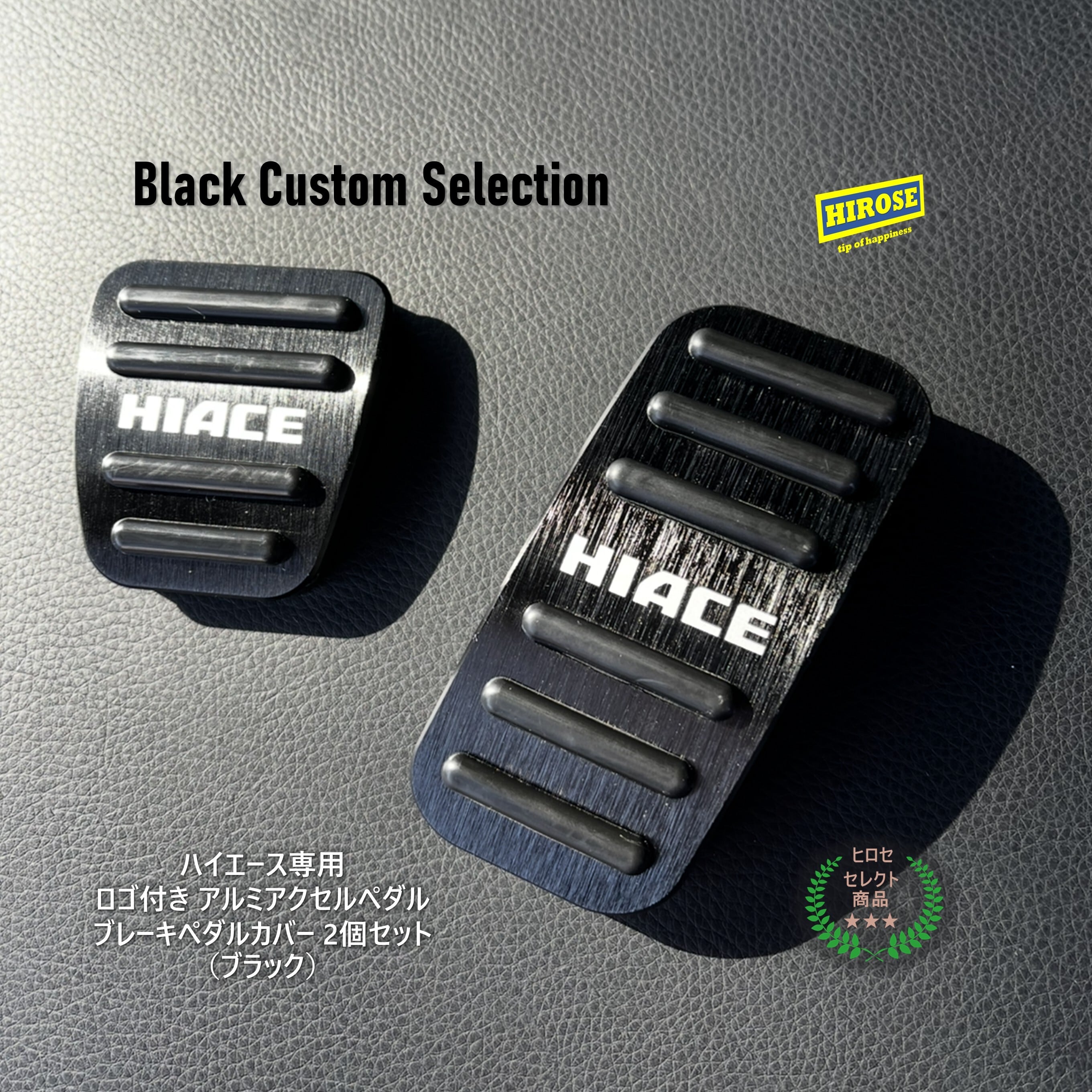 ハイエース1型~9型対応 ロゴ付き アルミアクセルペダル ブレーキペダルカバー 2個セット(ブラック)